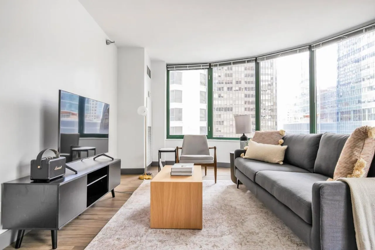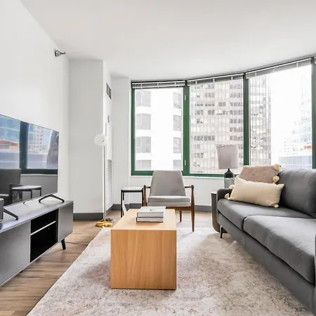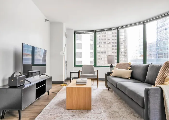 Quest'appartamento di 83 m^2 ha una cucina completamente attrezzata che include un microonde e utensili da cucina. Gli ospiti che soggiornano nell'alloggio possono godere della comodità di avere a disposizione servizi per la preparazione di tè/caffè. Gli ospiti possono provare la cucina americana al ristorante Shula's Steak House, che si trova a circa 5 minuti a piedi. Quest'appartamento è a pochi passi dalla stazione della metropolitana di Grand e a 25 km dall'aeroporto Internazionale di Chicago Midway. Per rendere il soggiorno nell'appartamento ancora più gradevole, gli ospiti possono partecipare a corsi di fitness.